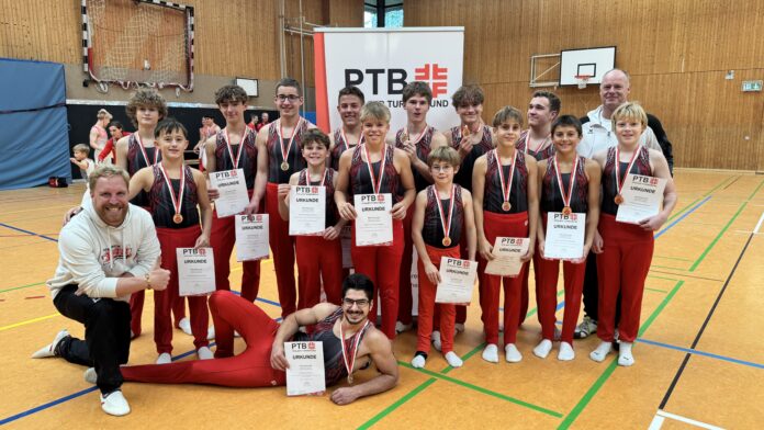 Herausragende Einzelleistungen zeigten Gabor am Reck (15,7) und an den Ringen (15,0), Alexander am Barren (15,5), Bjarn am Pauschenpferd (15,7) sowie Anton am Boden (14,5) und beim Sprung (15,4).