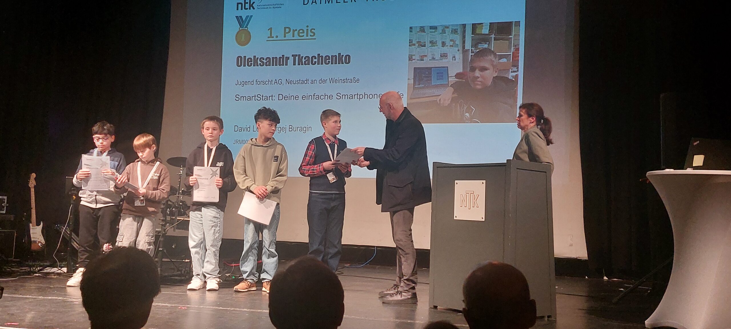 In der Kategorie Mathematik/Informatik erzielte Oleksandr Tkachenko (8b) mit „SmartStart – Deine einfache Smartphonehilfe“ den 1. Platz.