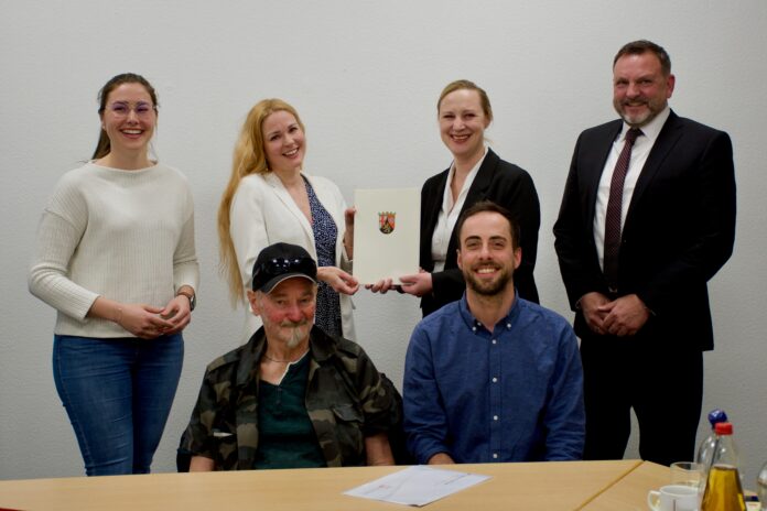 „Die Wohnung war das Samenkorn, aus dem für mich alles Weitere aufgegangen ist“, sagt Gunter M. der erste Teilnehmer des Housing-First-Projektes des Caritas-Zentrums Landau bei der Übergabe des neuen Förderbescheids durch Sozialministerin Dörte Schall (SPD).